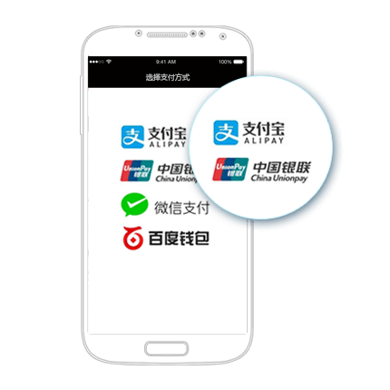 童骑士聚合支付系统,为iOS/Android原生/H5 App提供支付解决方案:支持微信支付、支付宝支付、银联手机支付、百度钱包等。